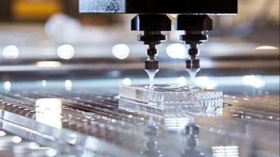 No corte a jato de água, um jato de água a alta pressão é utilizado para cortar o acrílico. A água é direcionada com velocidade e força suficientes para conseguir romper o material. O corte a jato de água é ideal para projetos que requerem maior espessura e não necessitam de alta precisão.